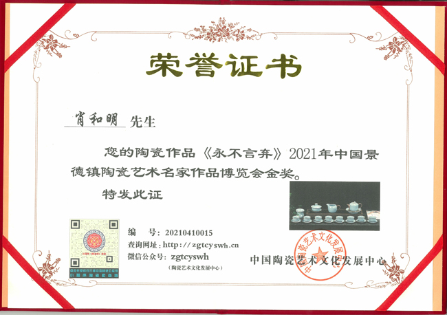 《永不言弃》荣获2021年中国景德镇陶瓷艺术名家作品博览会金奖