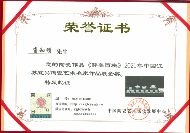 近日,由中国陶瓷艺术家肖和明创作的《永不言弃》荣获2021年中国景德镇陶瓷艺术名家作品博览会金奖《醉美西施》荣获2021年中国江苏宜兴陶瓷艺术名家作品博览会金奖。