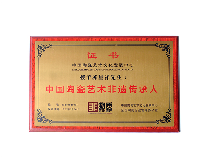 2021年荣获“中国陶瓷艺术非遗传承人”。