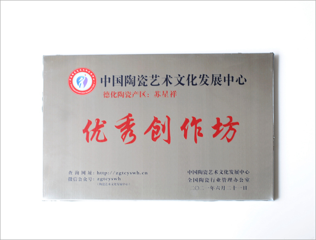 2021年荣获中国陶瓷艺术名家称号,并荣获“优秀创作坊工作室”。