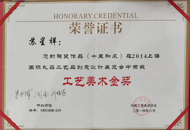 2014年《十里和风》获上海国际礼品展工艺美术金奖