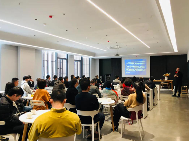 11月18日下午,福建省民间文艺家协会副主席、福建省工艺美术研究院院长余卫平在德化国际陶瓷艺术城内三德陶瓷展厅为“2021年中国非物质文化遗产传承人研修培训计划——传统陶瓷烧制技艺生活日用品设计开发培训班”的学员们做了一场《工艺美术的传承与创新》专题讲座。