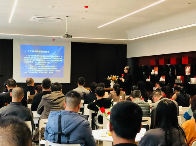 主讲人余卫平院长用自身的经历与独到的见解,引领学员们回顾工艺美术历史的发展,还介绍了工艺美术的发展现状,从新石器时代到鸦片战争之后,工艺美术的发展经历了从简到繁,从讲究实用到设计精美,每个时代都有其不同的美学特征。