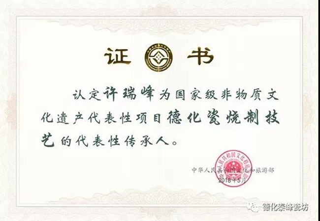 非物质文化遗产(德化瓷烧制技艺)国家级传承人
