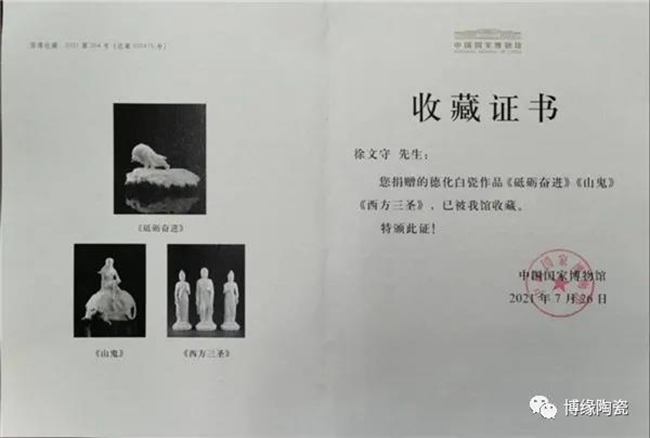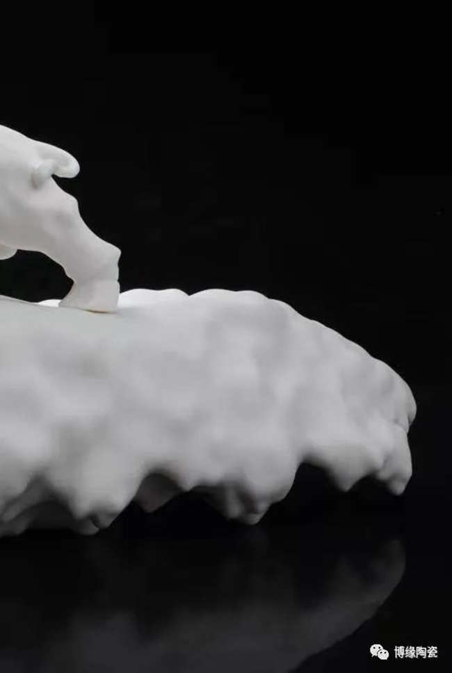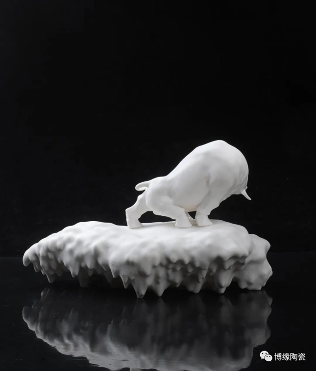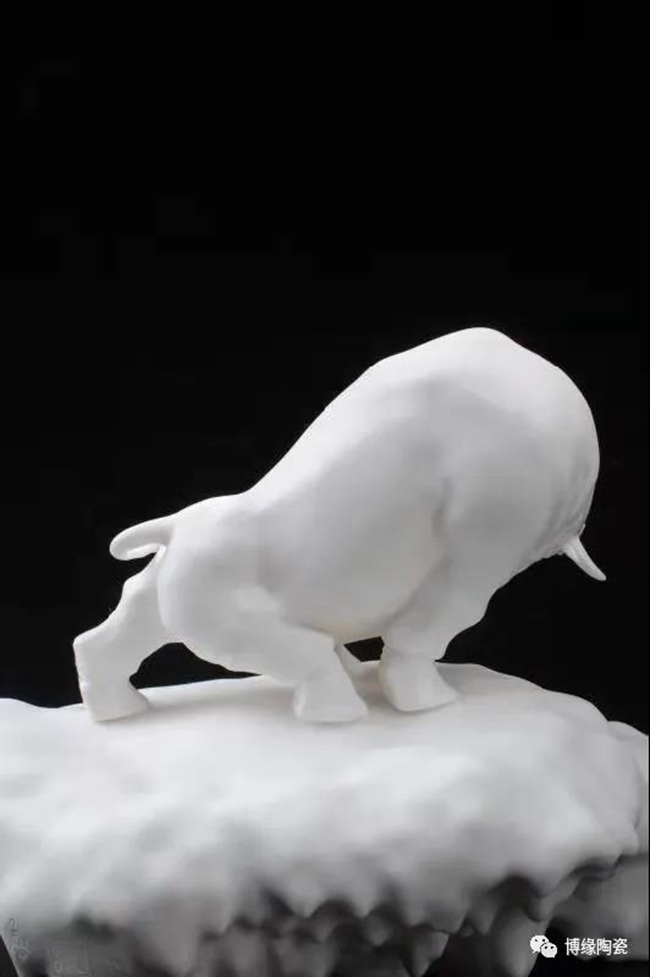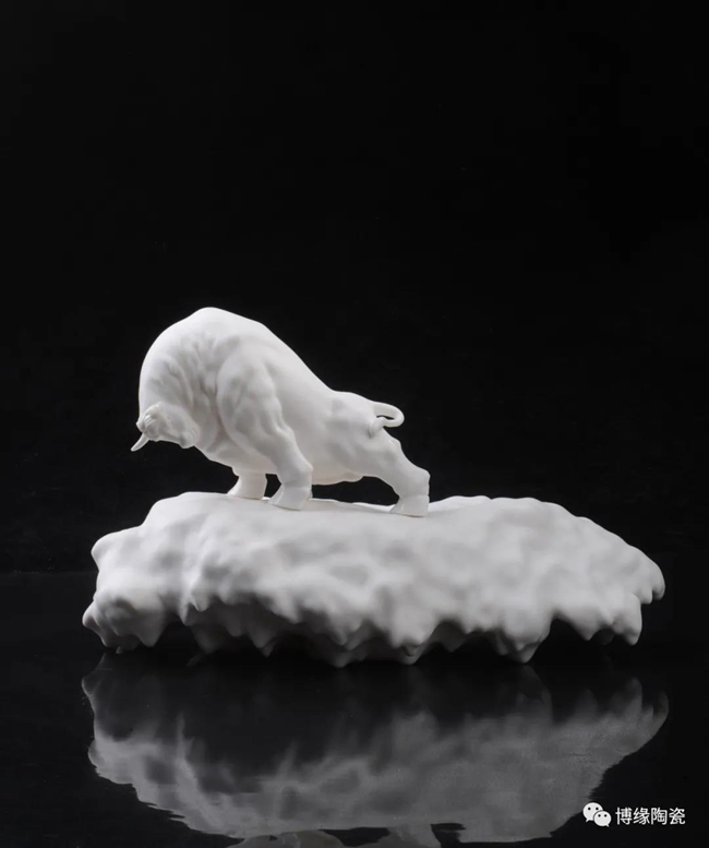 《砥砺奋进》由中国传统工艺美术大师徐文守创作,作品长33,宽 16,高20 cm,采用德化优质高岭土,经1300多度高温烧制,瓷胎温润似玉透光线强。