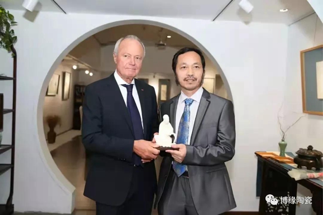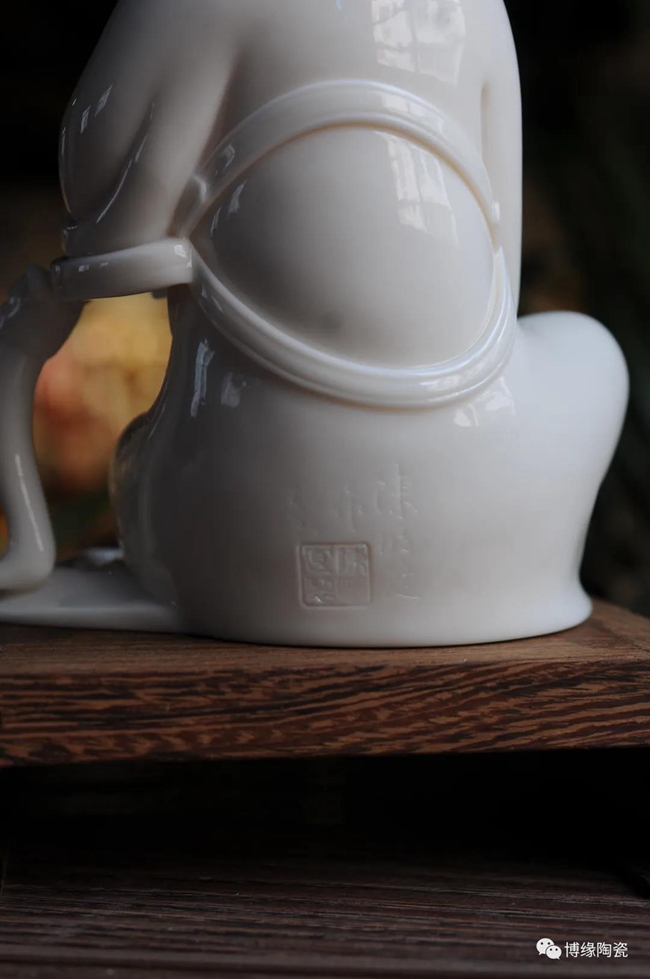作品采用优质德化白瓷高岭土,在自然光下瓷胎通透、温润似玉