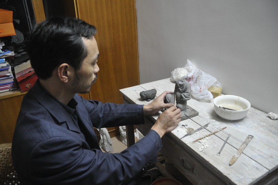 雕刻中的作品。陈明良供图