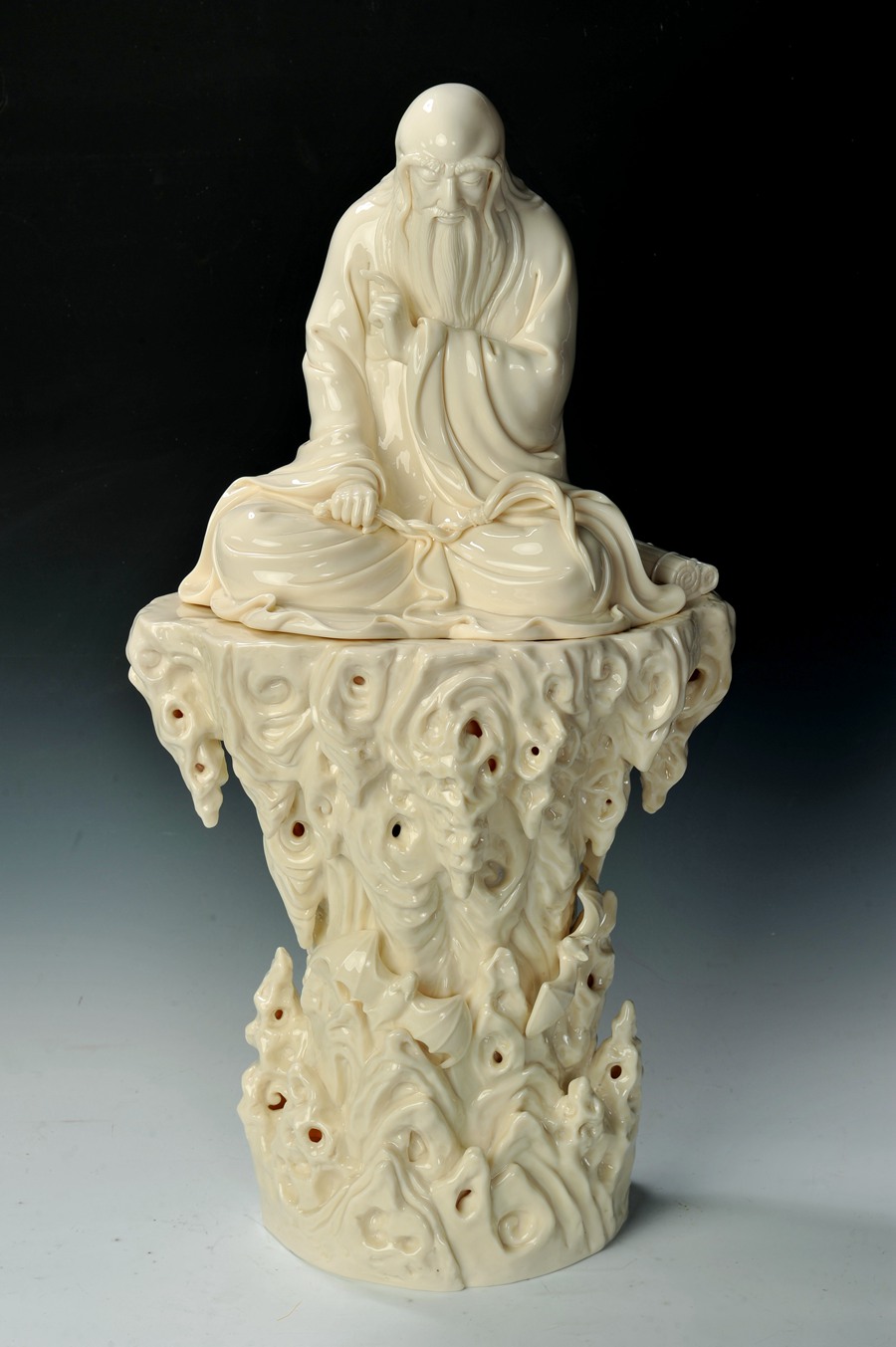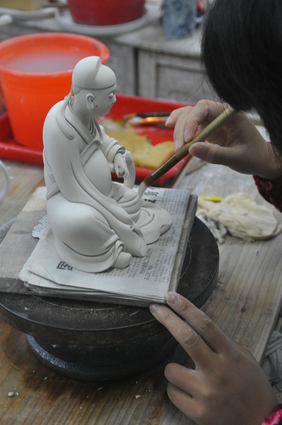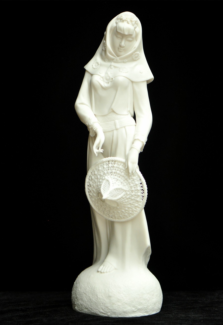 陈明良出生于陶瓷世家,从小跟随父亲学习德化日用瓷的烧造技艺。直到16岁,他开始拜师学艺,学习雕塑。洗泥、拉坯、雕刻、上釉、装烧……从艺40多年,陈明良在传承的基础上持续创新,努力创作新造型。他的许多作品成功再现了“象牙白”“猪油白”“孩儿红”等明代以来出现的釉色。