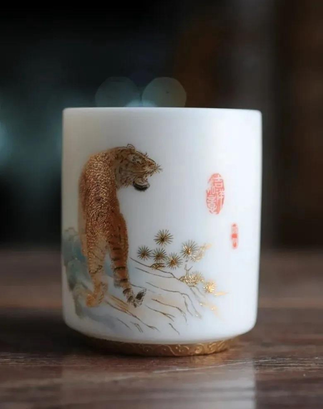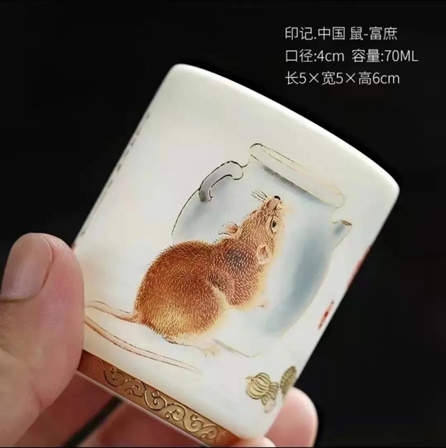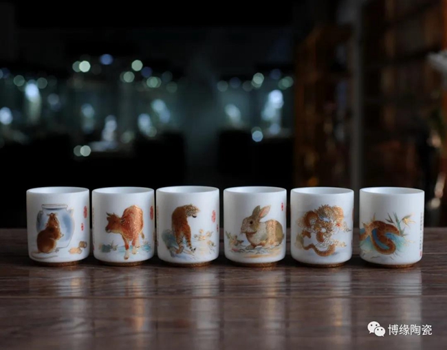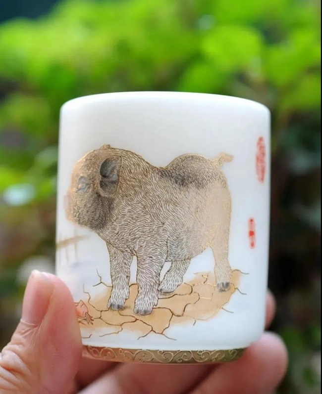 瓷杯通体质白中,生肖姿态生动活泼,吉祥福气。也为新的一年献以美好的祝愿,年年新气象,月月连好运。