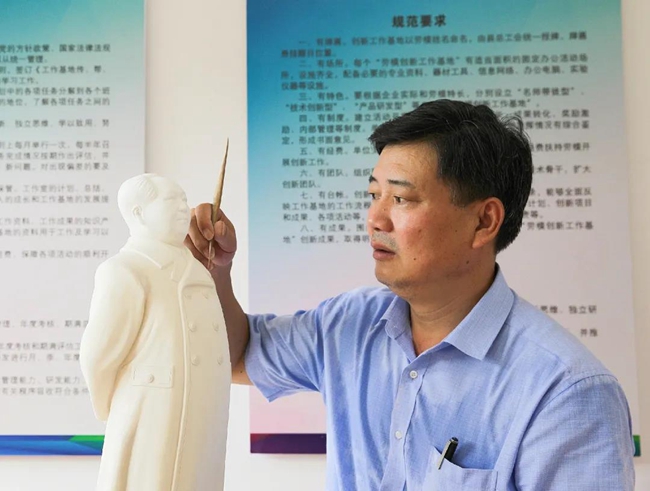 他创作了大量伟人题材作品,被誉为德化陶瓷界制作毛主席像的最典型的代表。