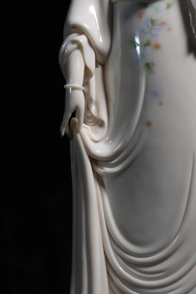 材质优良,再加上德化窑瓷工匠人精湛的技法,烧制出的白瓷能够呈现白里微黄(象牙白)或白里透红(孩儿红)的宝光,是东方人肤色最完美的表现。