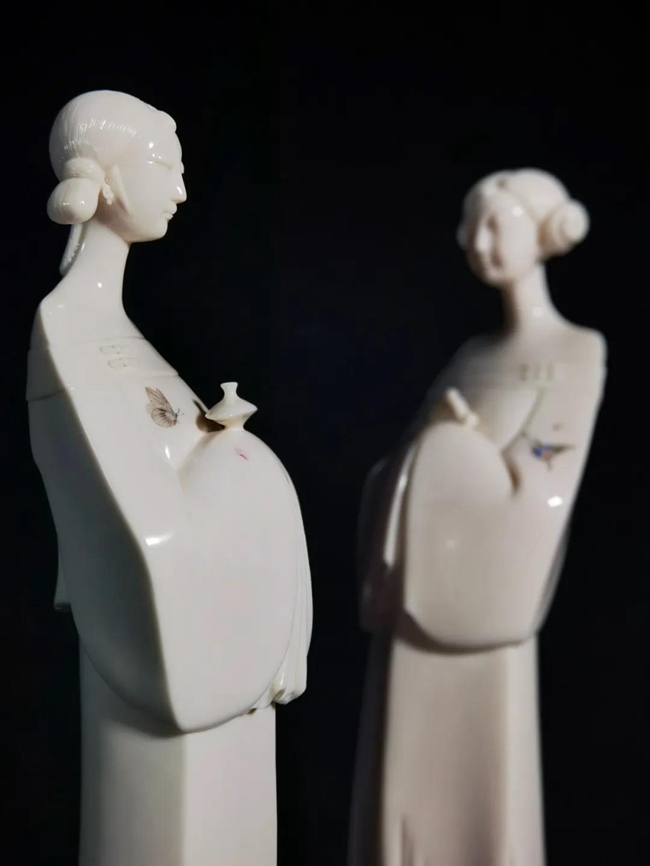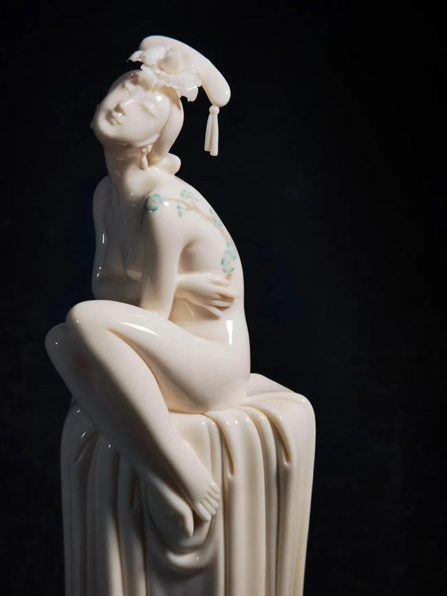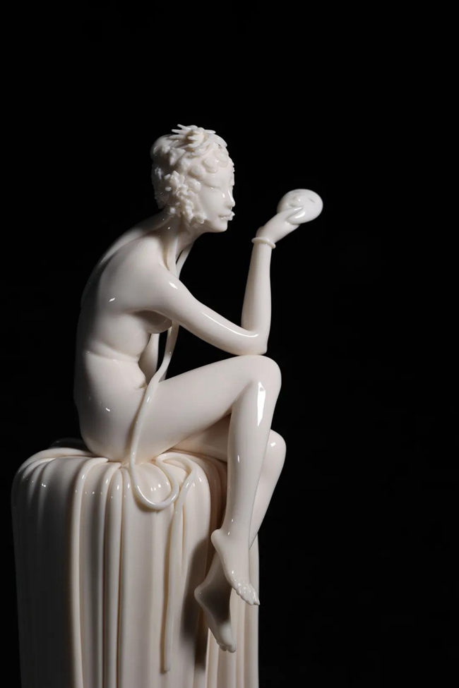 在《格格的梦想》《戏里戏外》《憧憬》等当代女性题材作品中,李璋高用白瓷这一细柔坚致、温润洁净的材质,表现和葆有了中国女性细腻而精美的精神世界。