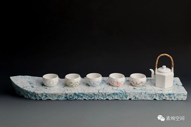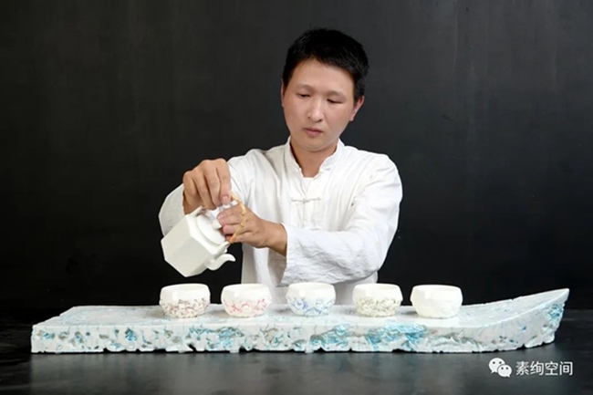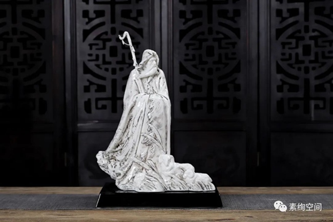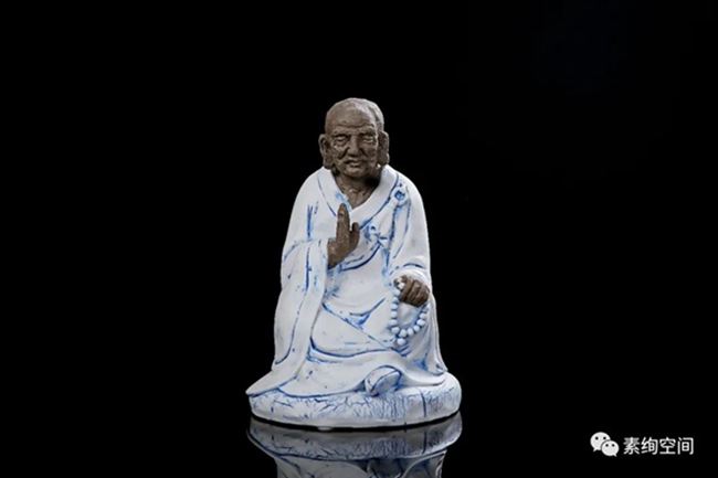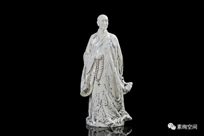 但德化毕竟是“中国白的故乡”,白瓷是德化陶瓷的特色。章再守2017年开始逐渐转向白瓷创作。但出于思变的追求,他依然不走寻常路,并不只是单一色的纯白,而是独辟蹊径,相继推出的《弘一大师》等作品在业界引起一定的反响。