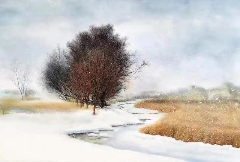 瓷板画作品 谭江宁《 雪域别园》 (德化县忆加美术馆 供图)