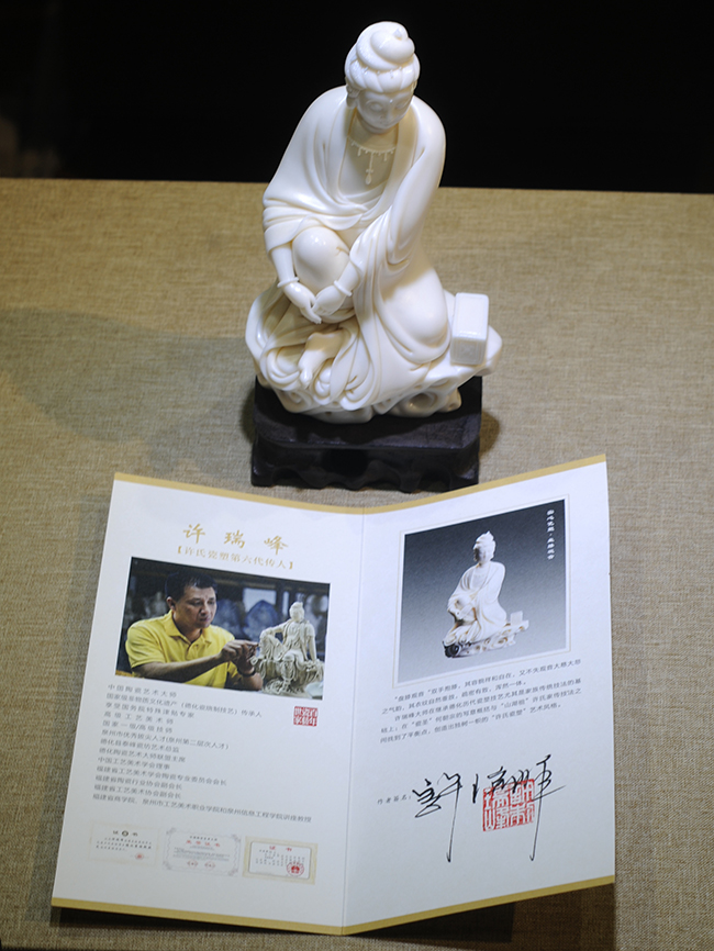 作品采用德化上等中国白瓷泥,实心烧制而成