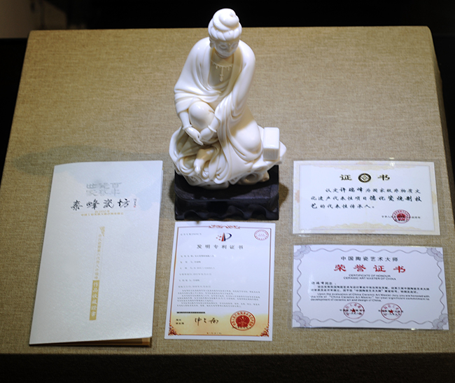 作品先后七十八次获得国家、省、部级嘉奖。并有二十六件作品被中国国家博物馆、中南海紫光阁、国家珍宝馆、中国美术馆、中国工艺美术馆、英国珍宝博物馆、福建省博物馆、福建省工艺美术珍品馆、德化陶瓷博物馆等多家文博单位收藏。