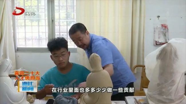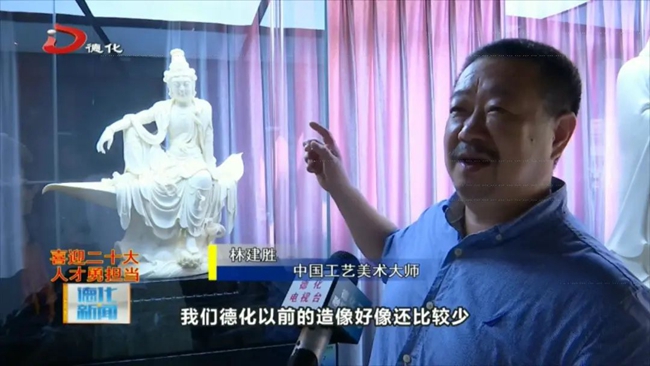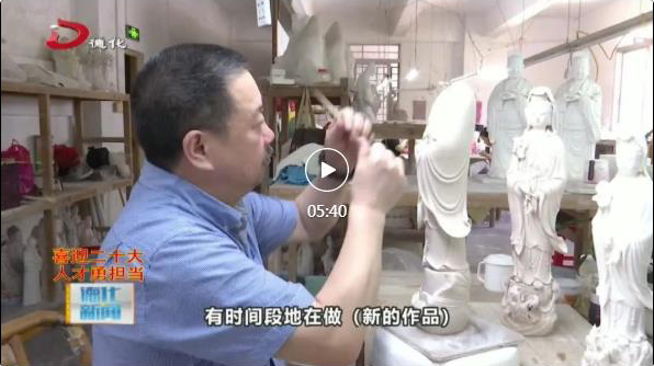 其实有一句话说,你经常跟(一)块泥接触,那块泥就会给你产生了很大的一个吸引力,也算是生活当中的一部分,这块泥能(给)你带来幸福,也可以带给你荣誉。(我)一直在坚守,一个就是在行业里边多做一些有意义的事,把我们一辈子学到的手艺传给那些徒弟,还有就是到外面出去多充电、多学习,再次提升,再次创新,为德化陶瓷行业能够做点有意义的事是我最大的荣幸。