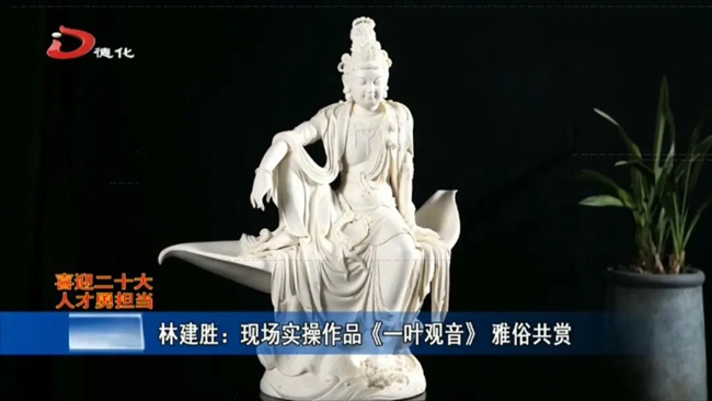 从事陶瓷行业40多年的林建胜,不仅是德化陶瓷产业发展的参与者、见证者,更是推动者。20世纪八十年代末,他与一名同事共同研发,首创《滴水观音》,在陶瓷界掀起一股“滴水观音”潮,至今仍是德化陶瓷的畅销品;1994年,一尊《坐莲观音》问世,不同于德化宗教瓷塑“文房清供”类作品,她面相慈爱,面部造型柔美,更具东方女性审美,再次引领业界潮流;2003年,林建胜着手创作了“微笑观音”系列作品,得到了东南亚华人信众的热烈反响,“微笑观音”至今在东南亚华人圈盛行不衰。让观音滴水,让观音走进佛龛,让观音笑起来……从艺数十年,林建胜一直走在德化佛像瓷塑创新的潮头。而今,林建胜仍旧在不断追问德化白瓷的可能性,近年来,又率先用白瓷塑造藏传佛像,还跳出宗教题材,涉猎《华夏贤哲》这样的新题材。
