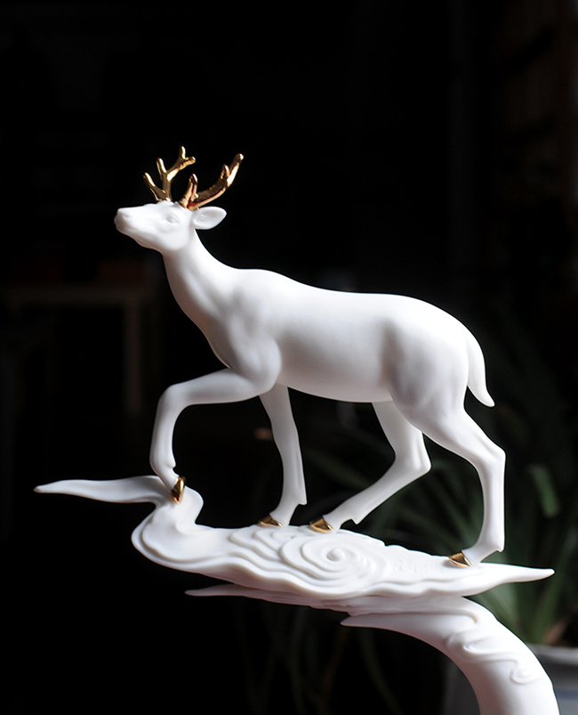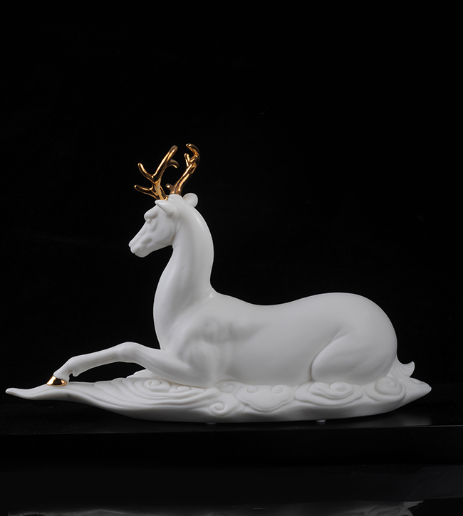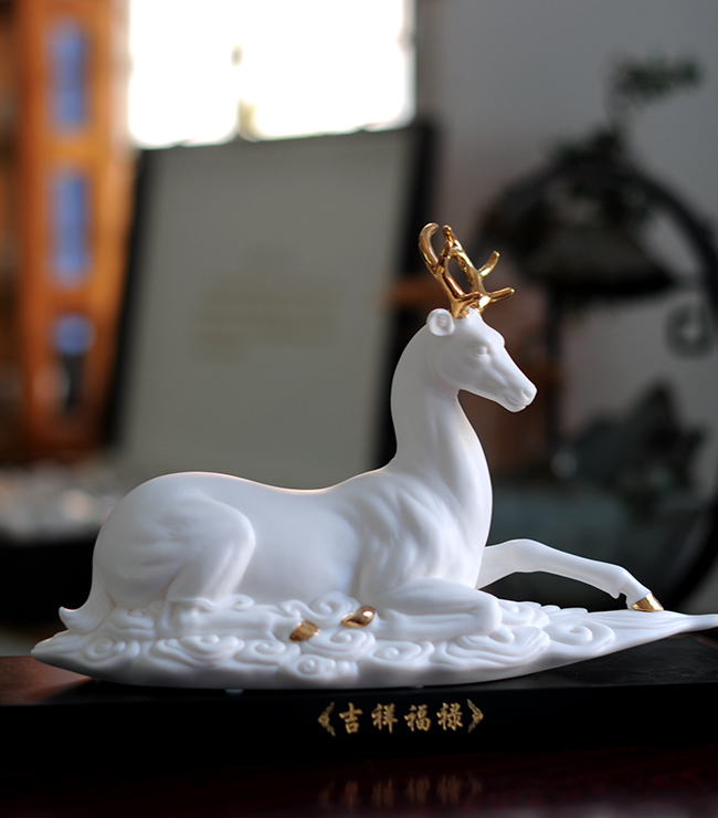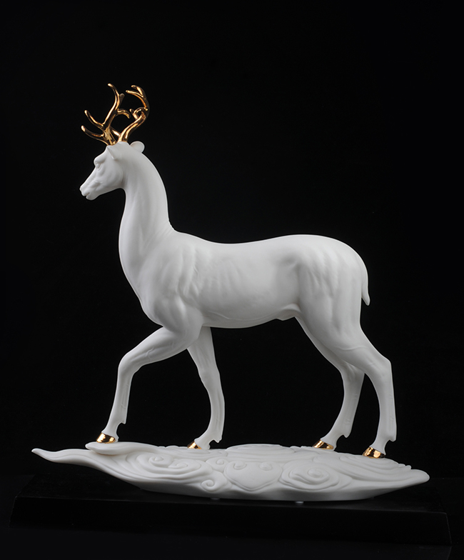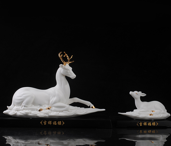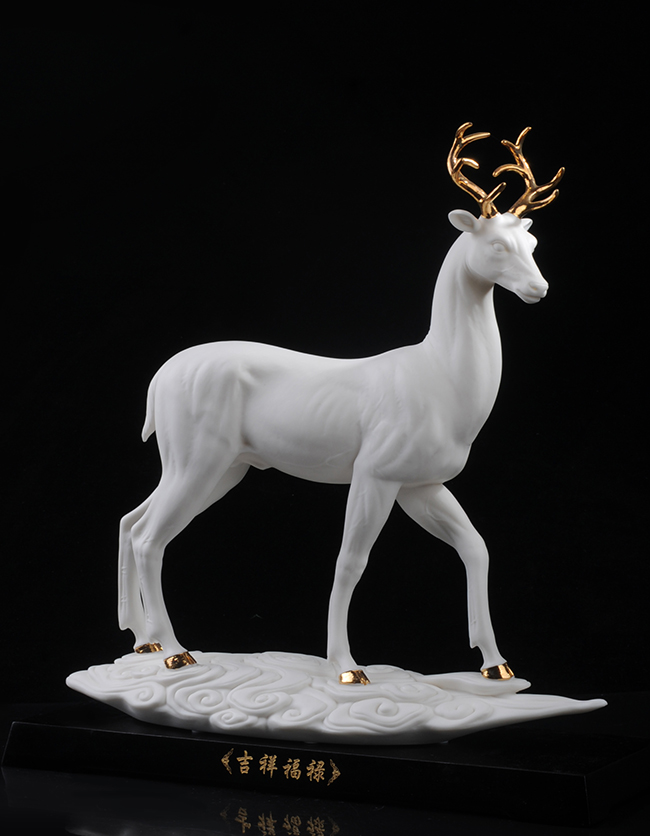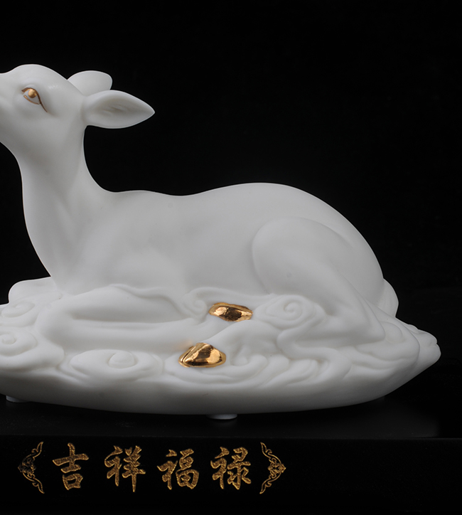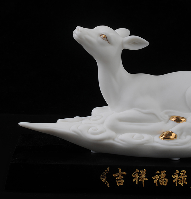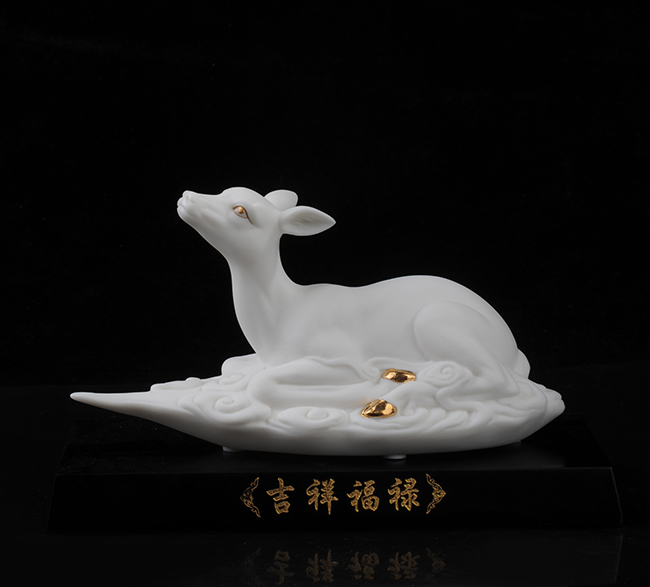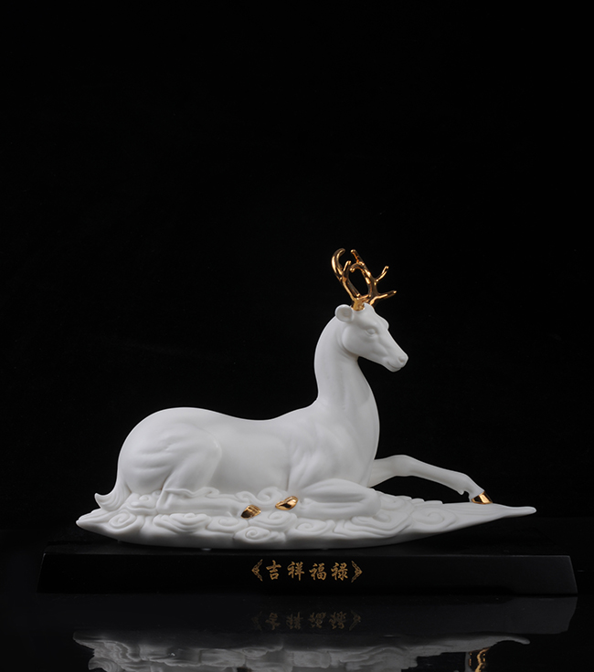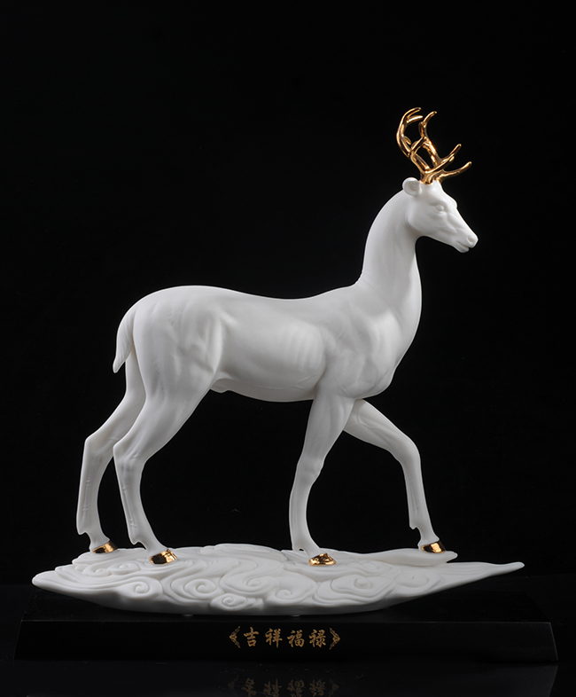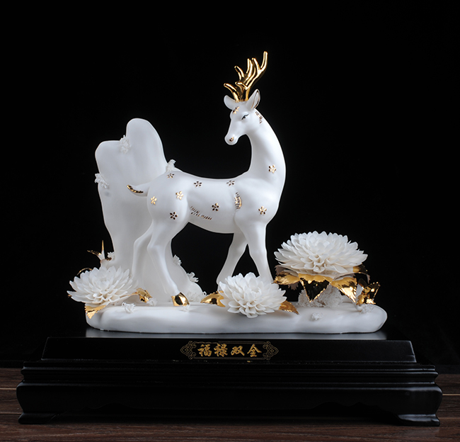 作品《福禄双全》鹿形饰物,“鹿”与“禄”同音。禄,古代称官吏的薪给为福禄,寓意财富,由高级工艺美术师手工打造,所塑鹿形态逼真,造型优美,以描金工艺体现作品高贵、以手工瓷花做为配饰,使作品更精细,并富有现代家居装饰美感,作品具有较高收藏价值及欣赏价值,是礼品、家居摆件、收藏的好选择。
