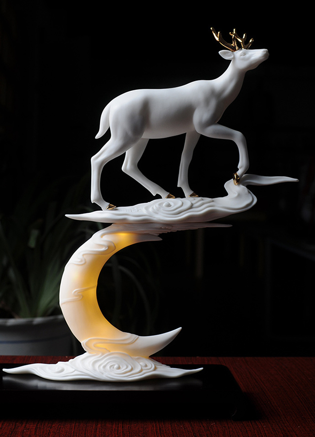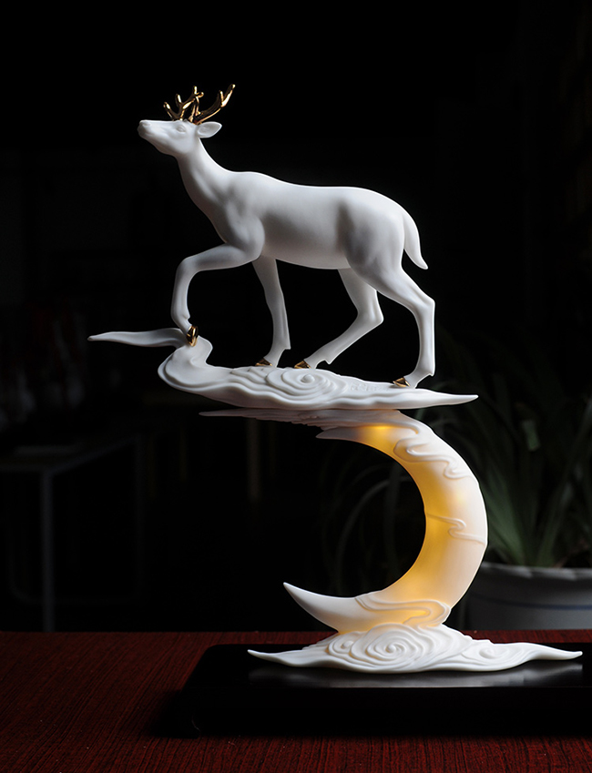 云微遮月,鹿踏于云上,造型刻画生动,栩栩如生