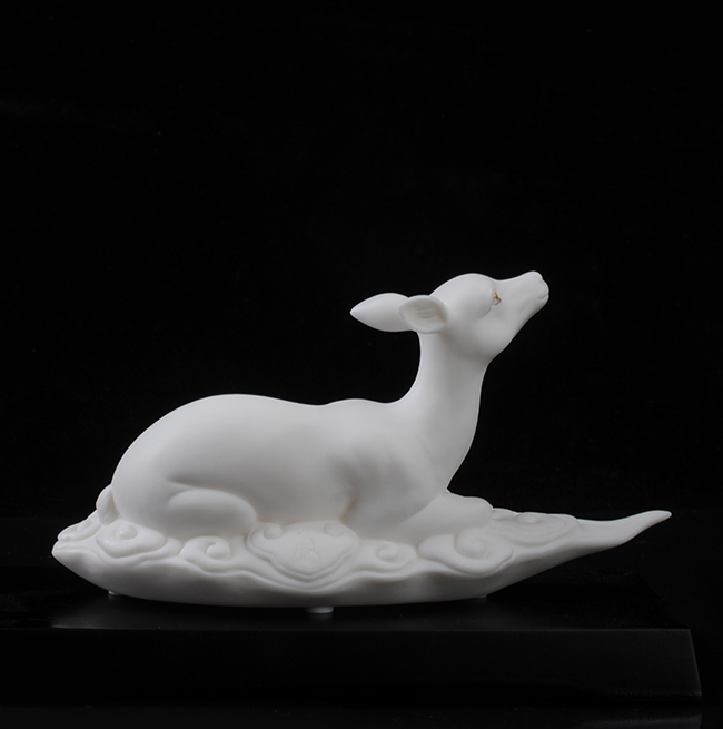 鹿于祥云之上,造型刻画生动,栩栩如生
