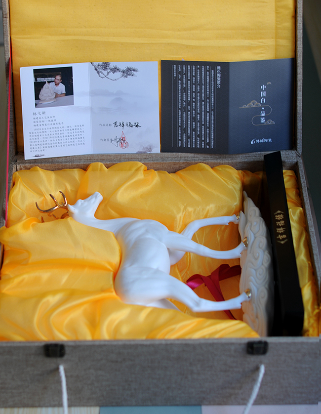 作品精选以德化温润如玉的 “中国白”为胎质,经1300多度高温烧制,胎体温润如玉,通体润白洁净,通透瓷感细腻,雕琢灵动,气质不凡,细节刻画丰满精细,耐人寻味。作品背部落有作者印章,是办公、家居、书房装饰摆设、礼赠、收藏的好选择。