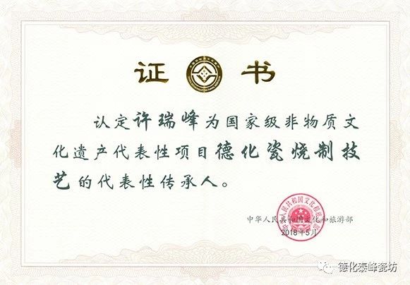 非物质文化遗产(德化瓷烧制技艺)国家级传承人