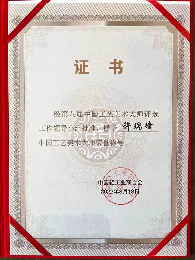 自幼随父亲许兴泰(中国工艺美术大师、中国陶瓷艺术大师)学艺,在继承德化历代瓷塑技艺尤其是家族传统技艺的基础上,致力于艺术创新与手法创新,在“瓷圣”何朝宗的写意概括与“山湖祖”精雕细琢的许氏家传技法之间找到了平衡点,创造出独树一帜的“许氏瓷塑”艺术风格。
