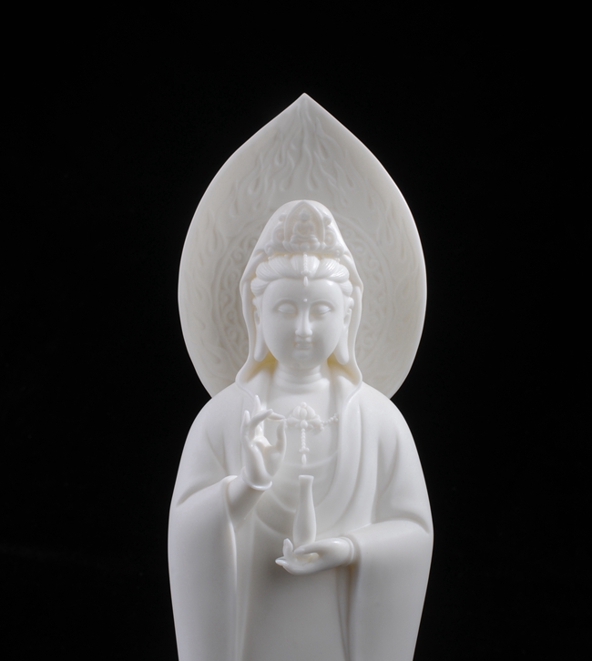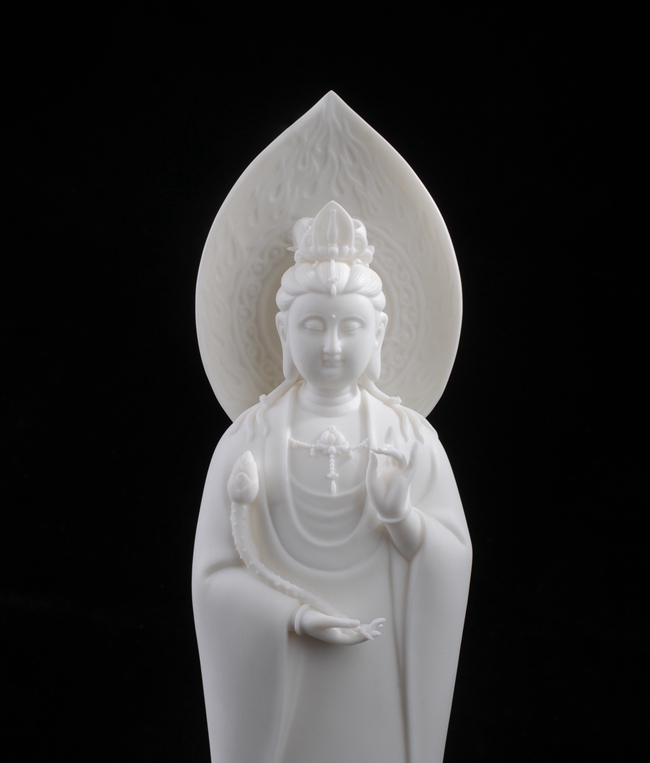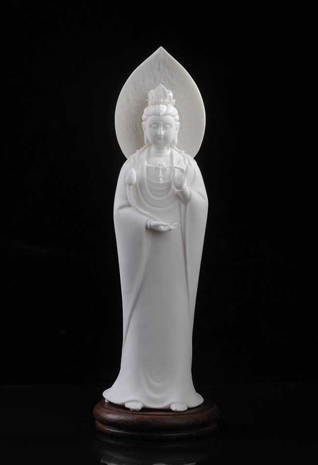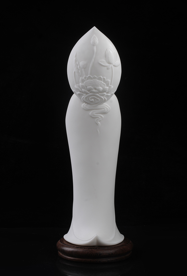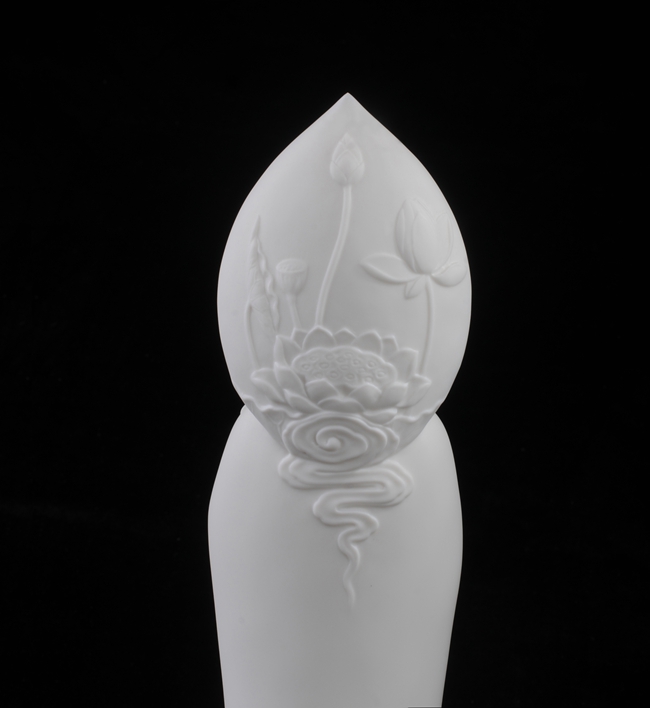 作品采用德化上等中国白瓷泥,千年传承,国家非遗保护项目(德化陶瓷烧制技艺),胎体温润如玉,通体润白洁净,胎密质坚。