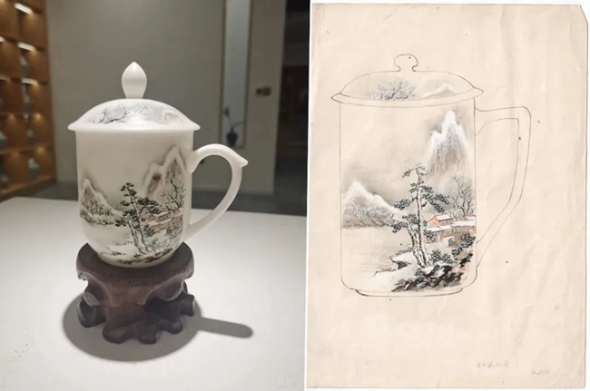 上图是祖父林质彬在五十年代画的手稿,时隔六十余年,林晓芳将它还原在现代器型上。
