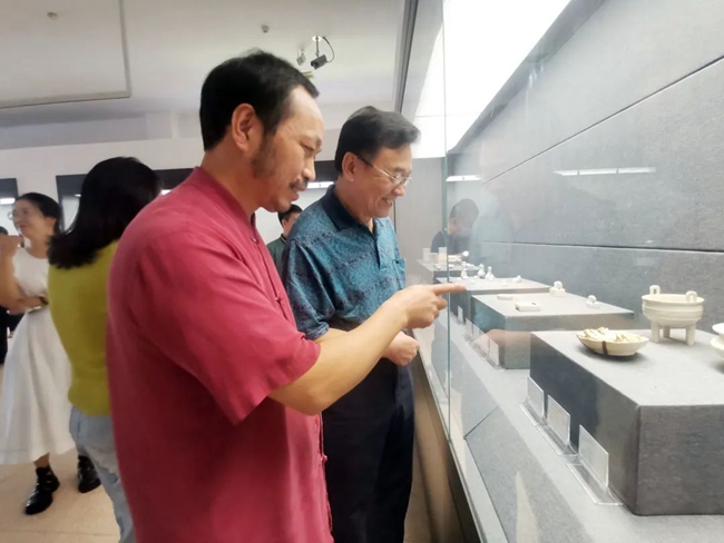 9月28日,德化窑古代茶具雅器收藏大展在陶瓷博物馆开幕,中国陶瓷工业协会常务副理事长吴越申、中国收藏家协会理事长罗伯健,以及县长方俊钦等县领导参加开幕仪式,并现场参观展览。