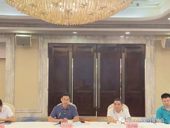 磁灶镇党委副书记、镇长蔡文卿作表态发言,感谢专家组对磁灶镇申报“中国陶瓷名镇”有关工作提出了宝贵意见,为磁灶陶瓷产业今后的高质量发展指明了方向。磁灶将以此次考评为契机,继续在陶瓷产业做大做强上下功夫,努力实现产业规模、质量双提升;将进一步完善发展规划,培育更多知名度高、生产规模大、生产技术先进的企业,提升产业集群的综合竞争力;进一步加速创新变革,推动思维、科技、文化、品牌、营销等方面创新变革赋能,提高产品附加值,提升产业核心竞争力;进一步实施技术改造,坚持绿色发展,在节水、节能、智能生产等关键环节上寻求突破,提高磁灶陶瓷的能效水平;进一步优化营商环境,拓展市场空间,完善配套设施,构建公共服务平台,加大“中国陶瓷名镇”的宣传推广,提升磁灶陶瓷的知名度和影响力。