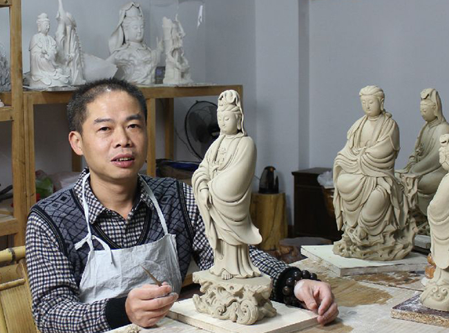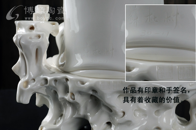 作品沿用德化传统的制瓷技法,捏、塑、雕、镂、贴、接、推、修