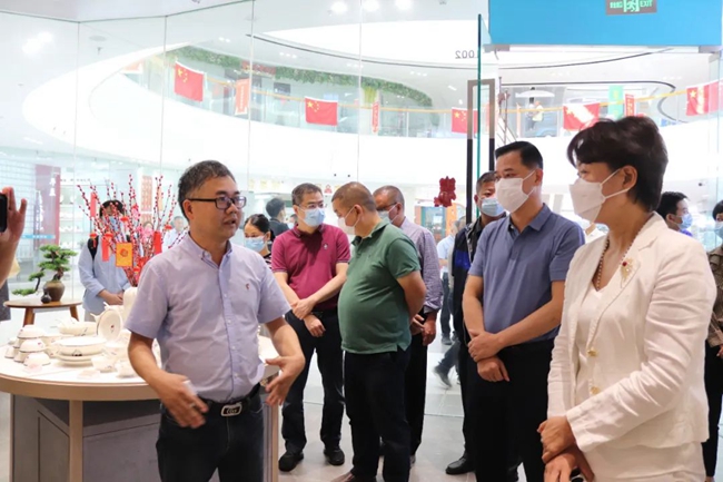 考察组一行先后到参观了瓷艺城内陈明良、邱双炯等大师工坊、各大品牌陶瓷馆以及四楼瓷遇广场内国际馆、大师馆、外销瓷馆、悟窑文创书店、悟造社手作坊等,详细了解了德化瓷艺城的基本情况、德化延续千年的制瓷历史脉络和陶瓷生产工序,并询问了相关陶瓷企业产品工艺特点和销售情况。