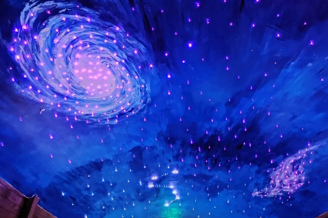 在“扬帆海丝路”主题课程上,老师指着头顶上蓝色的星空通道:”那时候航海远行的人们在这艘满载着德化瓷器的商船在一望无际的大洋上朝西航行三四个月,海丝国际贸易文化就在这条航线上诞生了。“