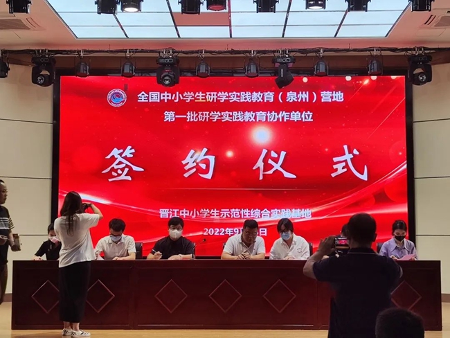 9月28日,全国中小学生研学实践教育(泉州)营地——晋江中小学生示范性综合实践基地,举行了第一批研学实践教育协作单位签约仪式。首批签约单位包括晋江五店市传统街区、顺美陶瓷文化世界、福建清源山旅游投资有限公司等12家。