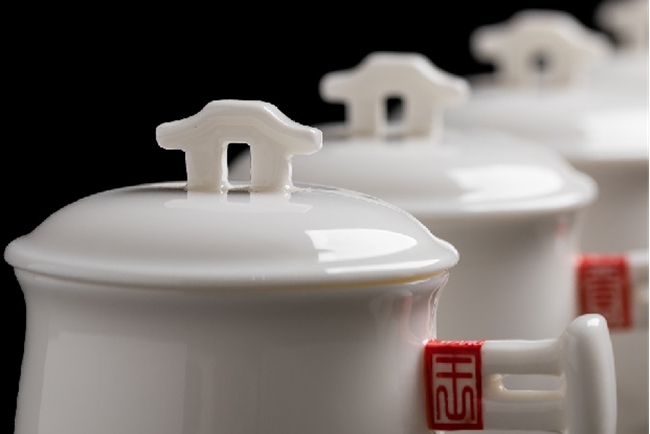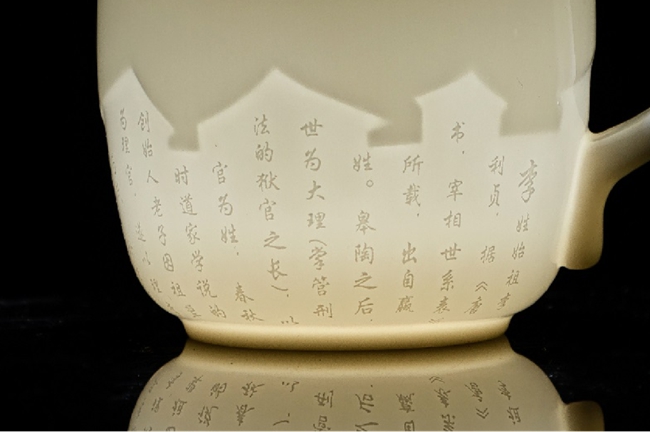 泉州工艺美术职业学院陶瓷艺术系副教授郑振雷带来新品《姓福杯》,提取“姓”与“福”进行组合设计,以温暖的创意打造福文化IP,成为全场亮点。隐形的姓氏文化在德化白瓷润透的瓷质之下,若隐若现,传递出家风文化内涵。“姓福杯”把手造型设计为鞠躬造型,谦卑有礼,彰显传统“家训”美德。值得一提的是,该杯子是定制款,刻上姓与名,一个专属于你的杯子就诞生了。
