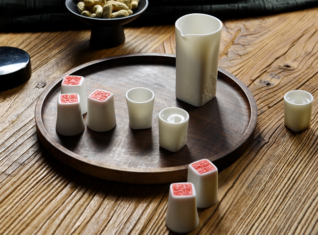 设计说明:四海一家两杯酒具采用中国白瓷为材料,杯身海浪图案代表的“四海一家”的寓意同海丝文化完美契合,产品器型采用天圆地方的方圆元素设计而成,寓意敬畏天地,道法自然,也指没有规矩不成方圆;器型的底部采用完全平面着地,方便客户篆刻印章或图文的私人定制。