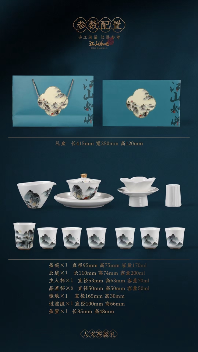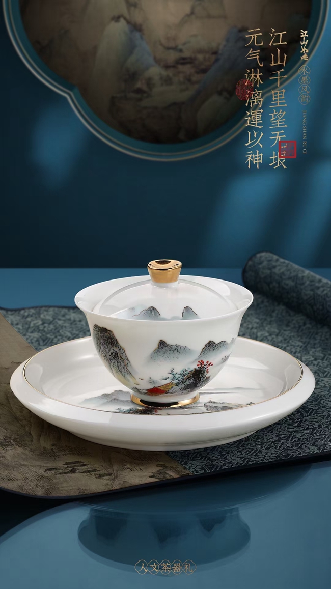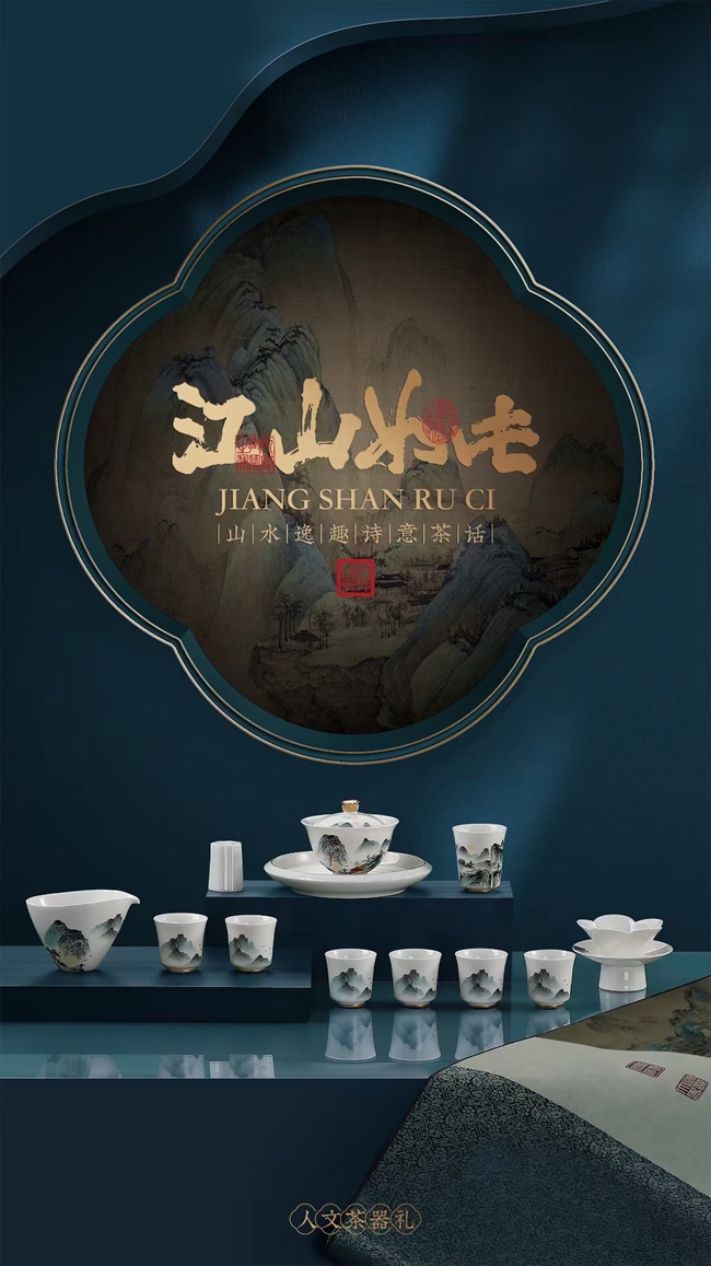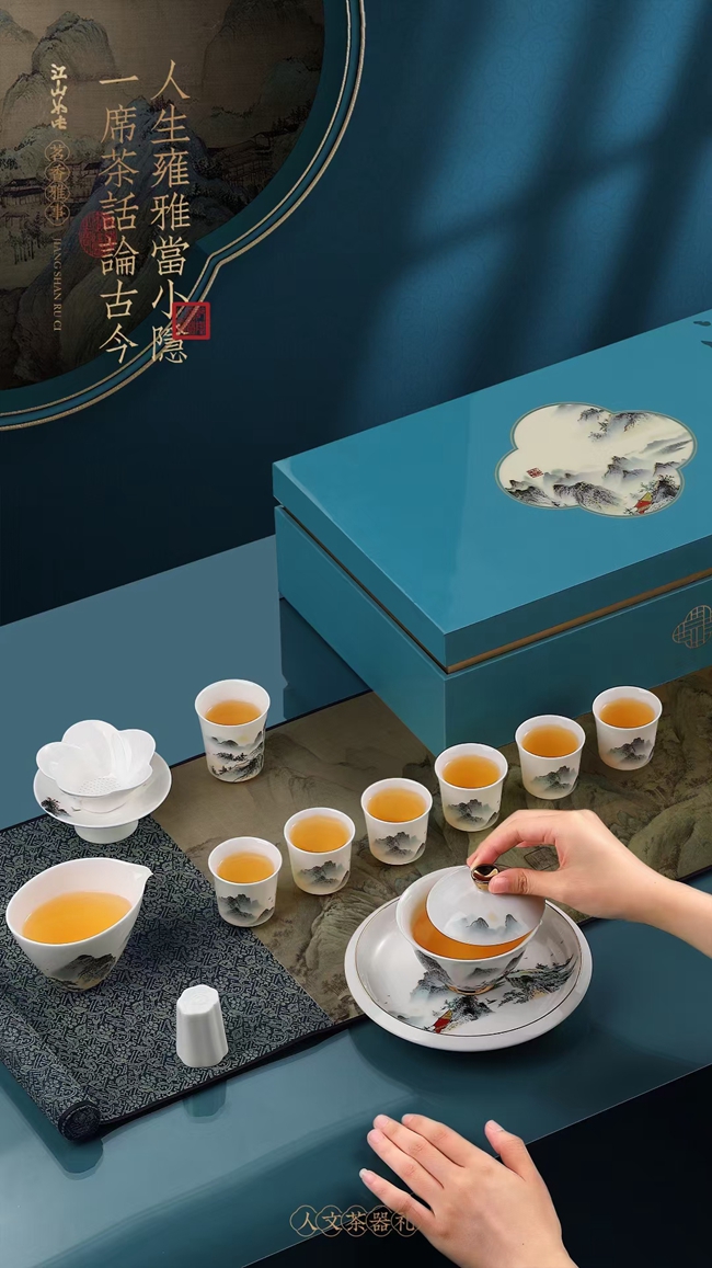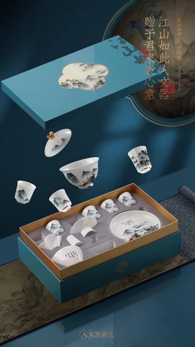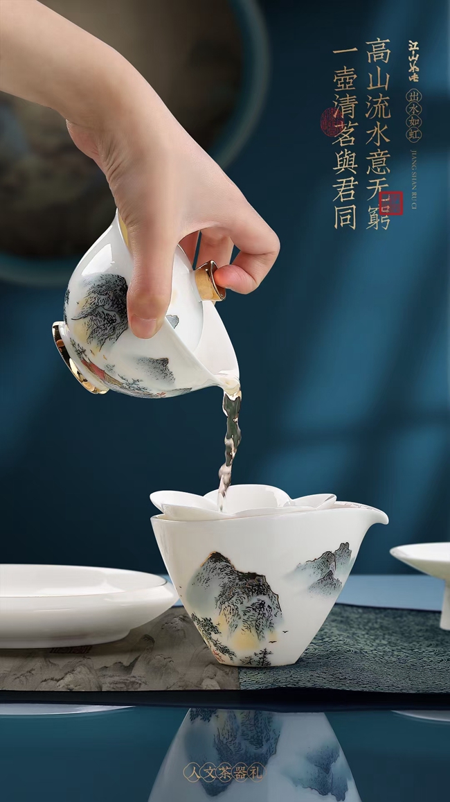 《江山如此》羊脂玉瓷茶具套装