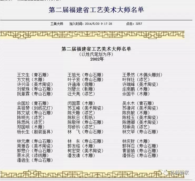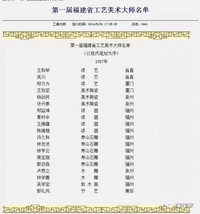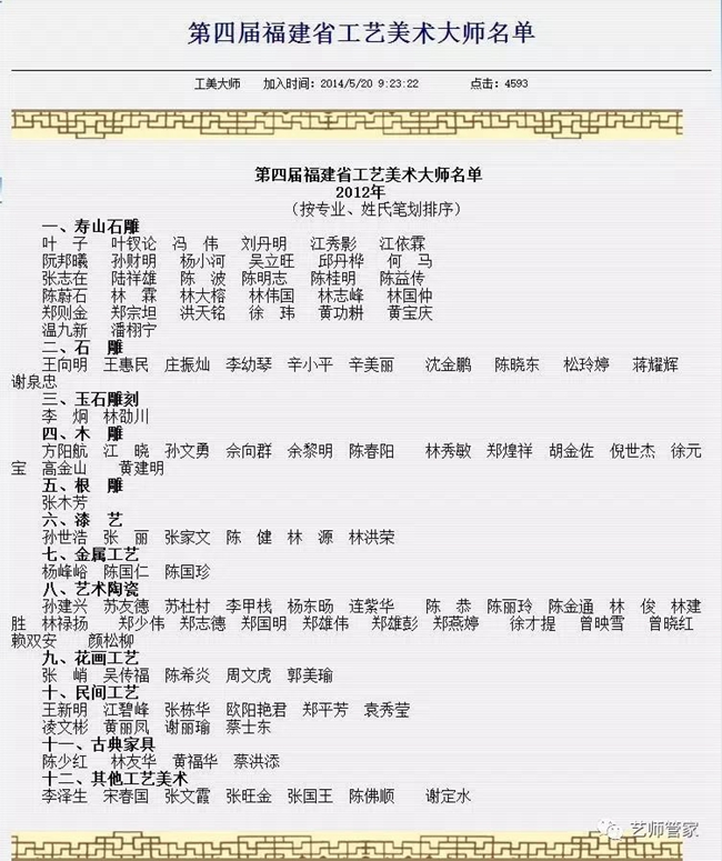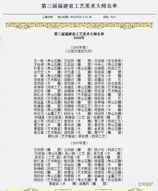第六届福建省工艺美术大师与福建省工艺美术名人