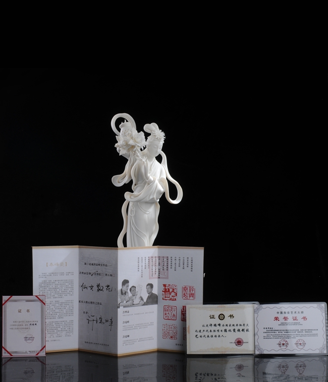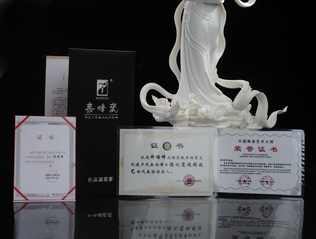 更为难得的是许氏瓷塑的历代传承人,可谓是瓷都德化知名的陶瓷名家,许友义为近代陶瓷名家,许兴泰、许瑞峰为中国工艺美术大师。许氏瓷塑其代表类作品主要为仙女、观音佛像等。
