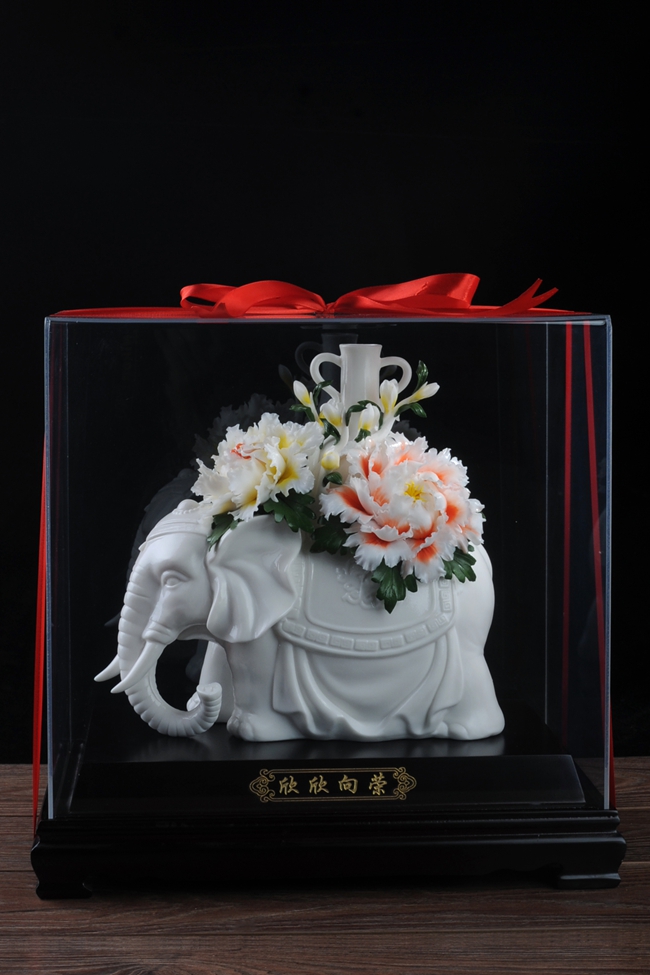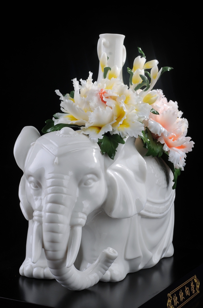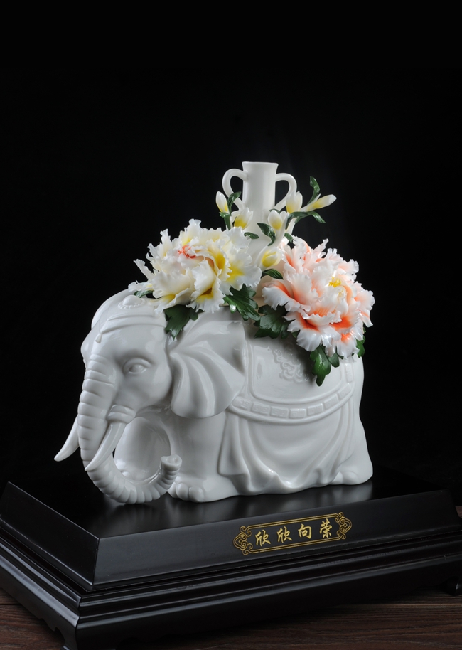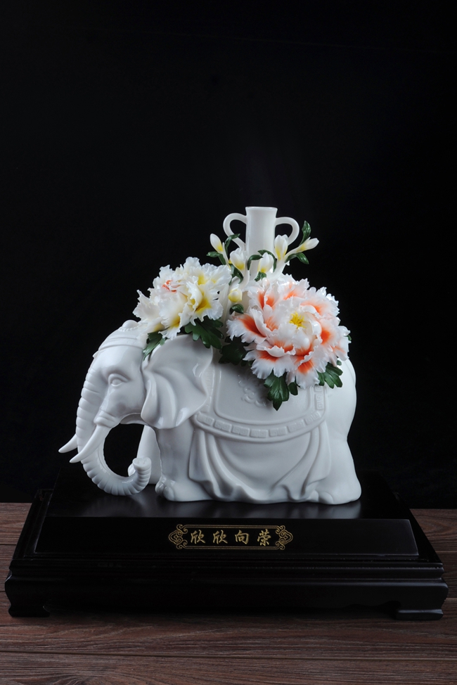 《欣欣向荣》作品由工艺美术大师设计创作,以具有”中国白" 的德化瓷与传统如意文化相结合雕刻而成。作品以大象、牡丹为元素相结合设计制作。大象在中国传统文化里与“祥”字谐音,故被赋予了吉祥寓意,寓意平安吉祥富贵长,大象背上牡丹盛开,牡丹代表富贵,寓意繁荣昌盛富贵吉祥,整件作品构思巧妙,布局合理,把欣欣向荣这一美好寓意表现得淋漓尽致,立体陶瓷造型真实感强,巧夺天工,相互映衬,相得益彰。作品是店铺、办公、家居客厅、书房摆设,礼赠、收藏的好选择。