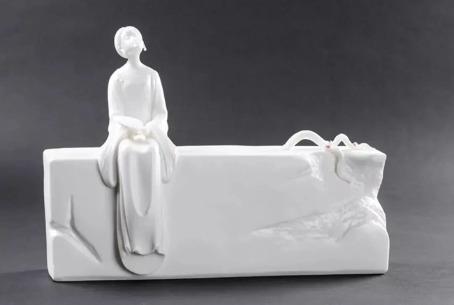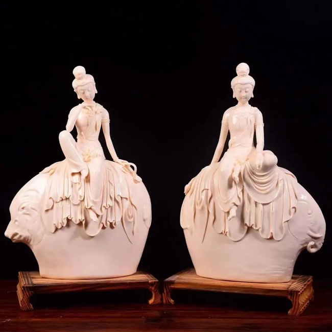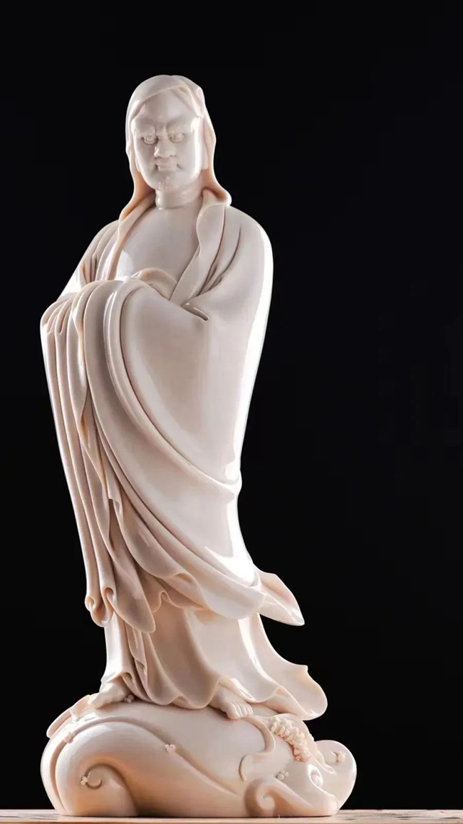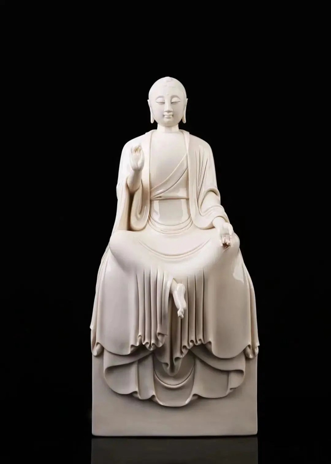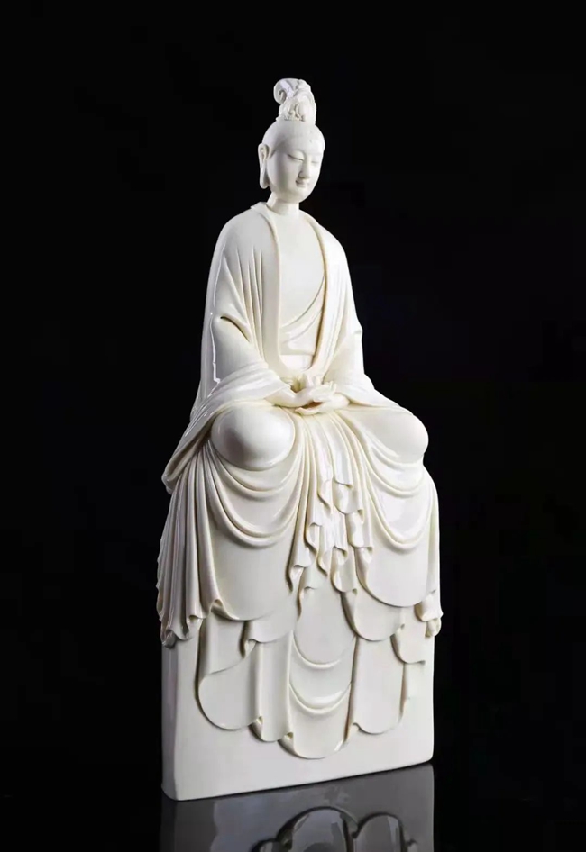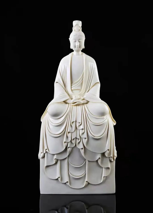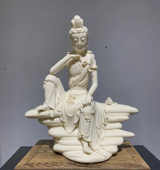 在所有题材创作中,陈建阳偏爱人物题材创作,在人物塑造方面积累了大量的经验,无论是观音、罗汉、弥勒、达摩,还是古典仕女、传统人物等,造型简练大方、线条清晰流畅,人物体态自然、面部表情舒缓,再加以白瓷素净典雅的特性,使陈建阳的人物雕塑更显雅致。