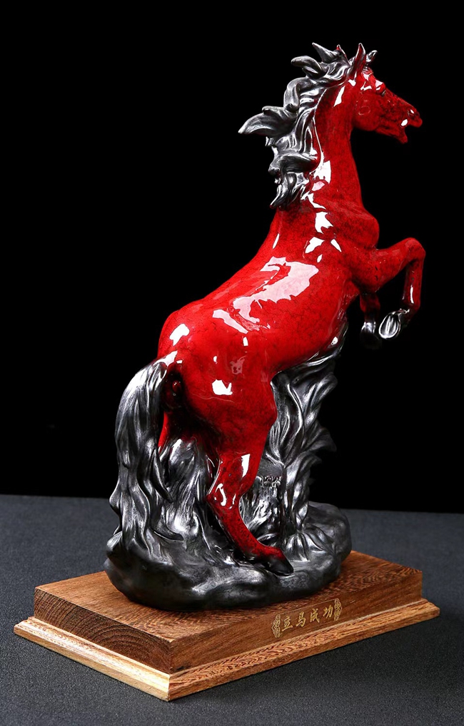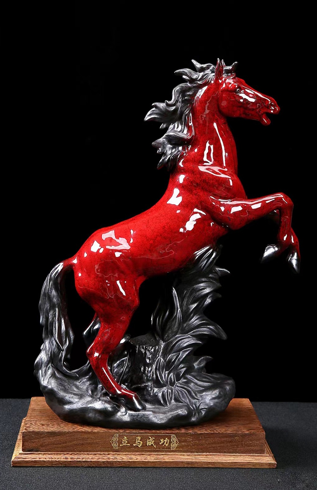 《立马成功》由全国陶瓷技术能手、福建省陶瓷艺术大师蔡国海设计创作,其为蔡国海代表作品这一。作品可见骏马精神抖擞,身强力壮,迎风奔驰,皮肤下面,是热血奔涌的血管,进而是块状的肌肉与健壮的骨架,马的蹄、鬓毛、眼神、耳朵、乃至鼻息,都传递出浓烈的信息,具有较强的艺术感染力。作品做工精细,配有作者亲笔签名收藏证书及精美礼盒包装,是家居摆设及礼品馈赠的好选择。