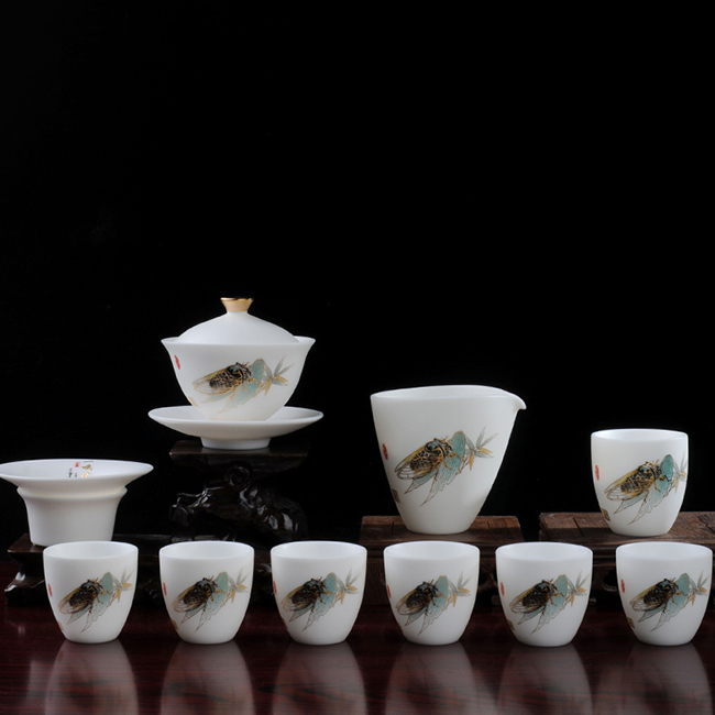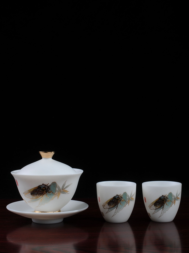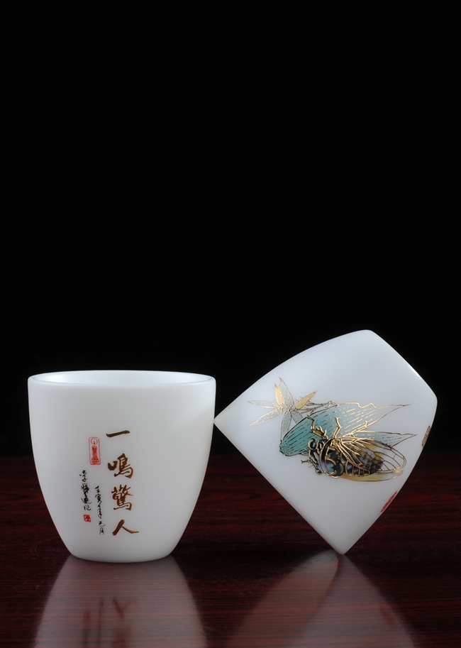 羊脂玉茶器材质为精选优质高岭土,经加工1300多度高温烧制而成,其瓷质温润似玉、透光性强,胎骨洁白,作品采用手工堆金描金工艺,匠师一鸣惊人图饰设计,触感立体,整套作品清新美观,品质尊贵,礼盒包装上档次,是品茶、家居、礼品好选择。