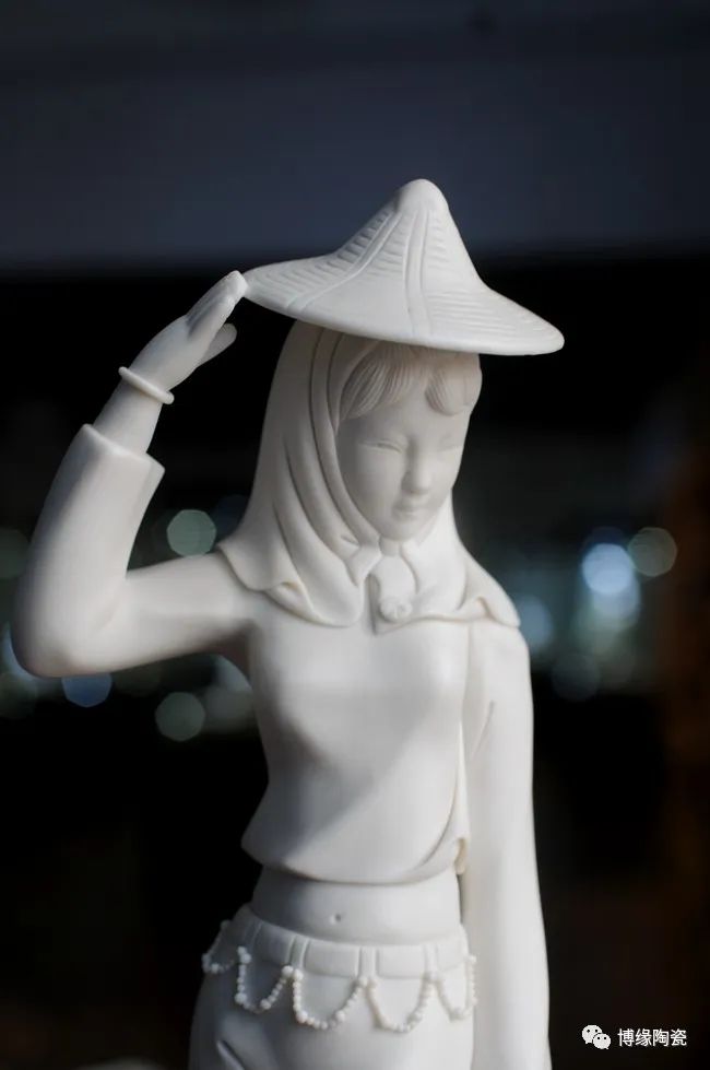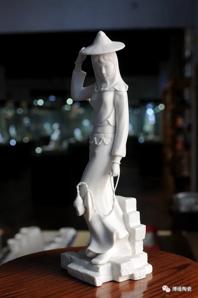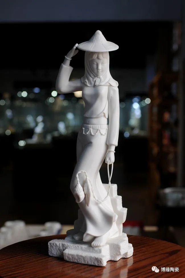 《赶海》由工艺师设计创作。作品以德化温润如玉的德化白瓷为胎质,经1300多度高温烧制,胎体温润如玉,胎体通透,温润如玉,瓷感细腻。作品以写实雕塑手法,见一民间风情女子,头带斗笠,头巾捂住双颊下颌,上身穿短狭斜襟衫,露出肚脐,下穿宽大黑裤,抬脚盘坐石子,独具风采。作品纯手工雕刻,细致刻画,所到之处无不精细赞叹,足见大师在创作时的独运匠心,作品有大师印章落款,兼具审美价值和收藏价值,是一件不可多得的收藏精品。是办公、家居、书房装饰摆设、礼赠、收藏的好选择。