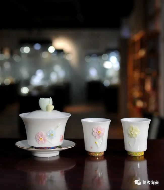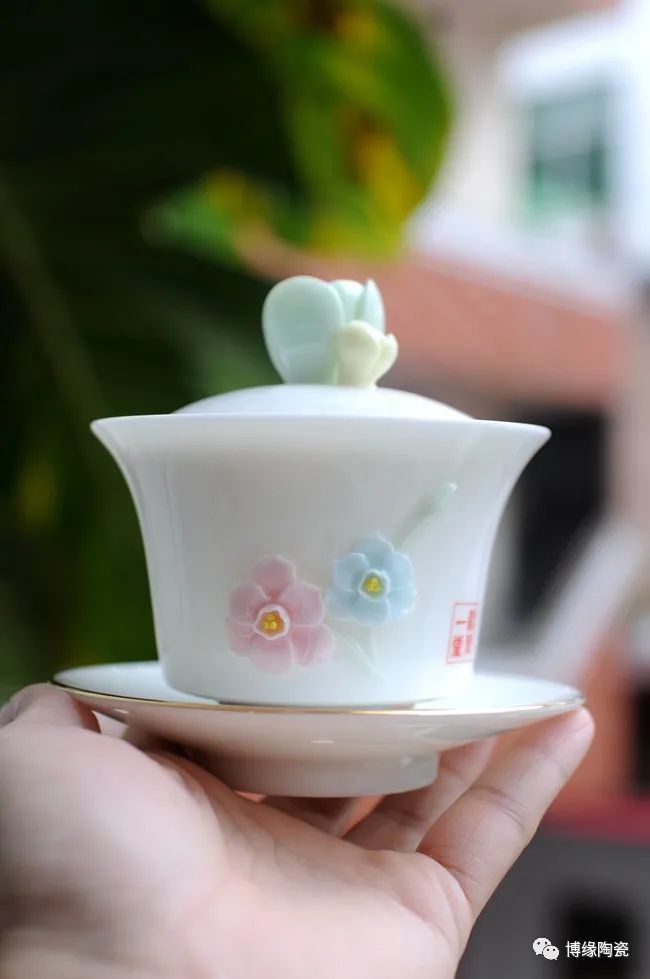 《芳华》由工艺美术大师设计,精选优质高岭土,经1300多度高温烧制而成,瓷质温润似玉、透光性强,胎骨洁白,作品采用手工捏花制作配结合珐琅彩设计,整套作品清新雅致,礼盒包装,精美上档次,是品茶、家居、礼品好选择。
