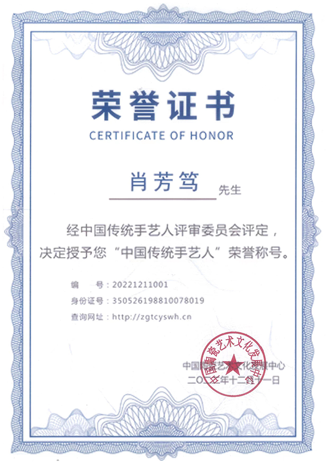 中国陶瓷艺术名家、中国陶瓷艺术非遗传承人、中国传统手艺人——肖芳笃