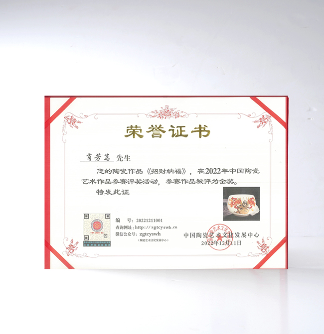 2022年《招财纳福》荣获北京陶瓷艺术名家作品展金奖