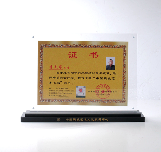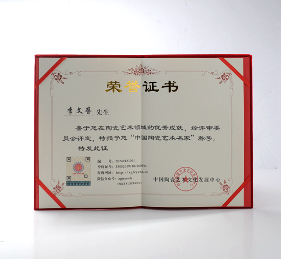 李文簪从小深受千年瓷都德化陶瓷文化熏陶,出生于一代“瓷圣”何朝宗故乡瓷都德化浔中镇后所,从小耳濡目染,对德化陶瓷产生浓厚兴趣,也喜欢上了陶瓷及其烧制技艺。从小跟随瓷都德化老艺人学艺,从艺30多年,熟练掌握泥料选配、器型设计、手拉坯、釉水配方、烧制技艺,专注茶品作品创作。经过多年创作,其创作出一系列茶器作品,作品器形丰富,款式新颖,深受广大客户及收藏爱好者喜爱,多件作品被评为金奖,2024年作品《龙跃凤鸣紫砂茶壶》荣获北京中国陶瓷艺术名家作品展金奖等。